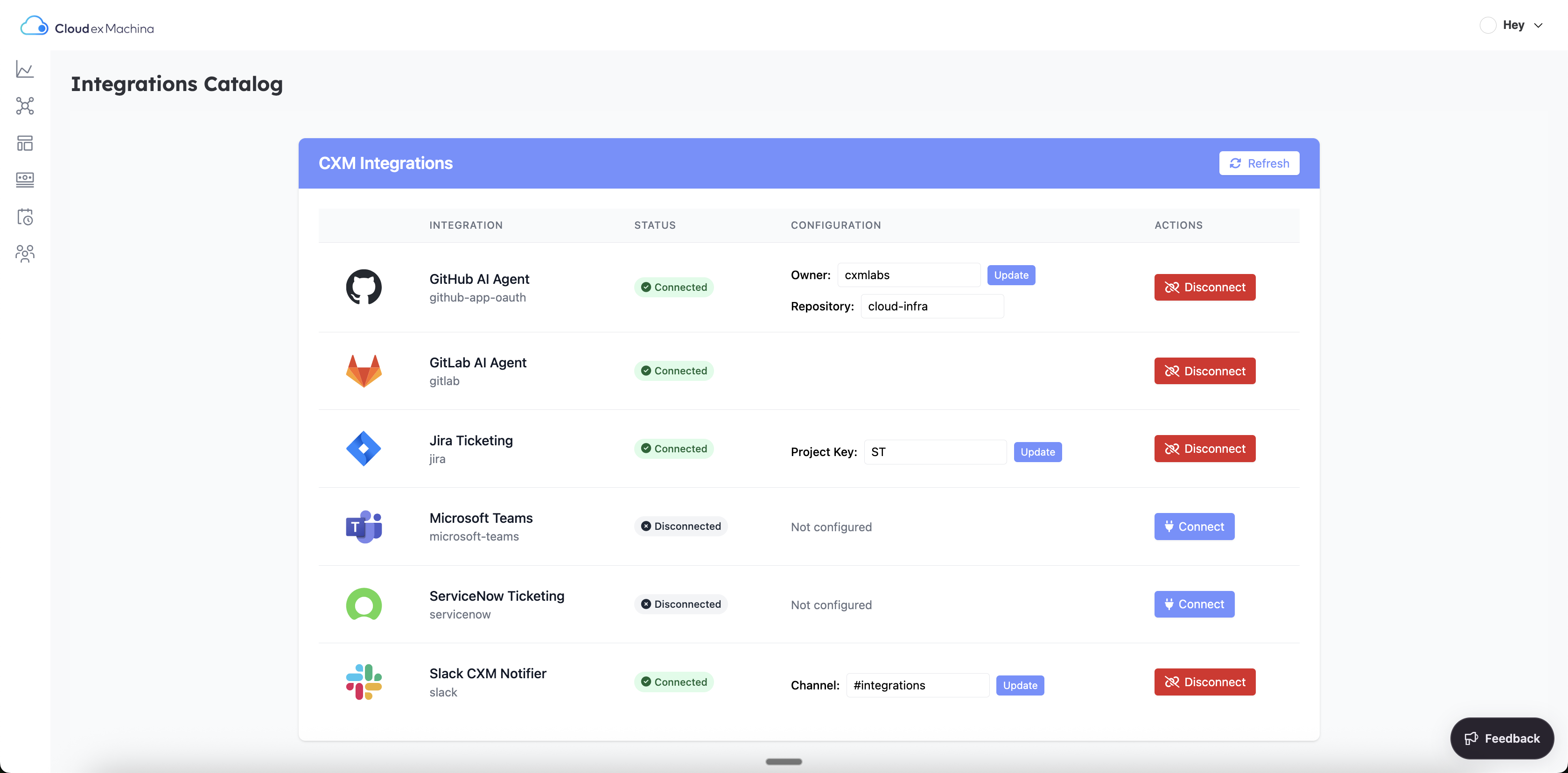 This guide walks you through connecting and customizing integrations with third-party providers in Cloud ex Machina.